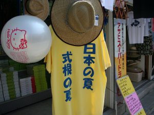 ・ 式根島Tシャツ(1年ごとに新作を出しています) ・ 式根島キューピーストラップ ・ 式根島の砂入りストラップ ・ その他オリジナルキーホルダーなど |