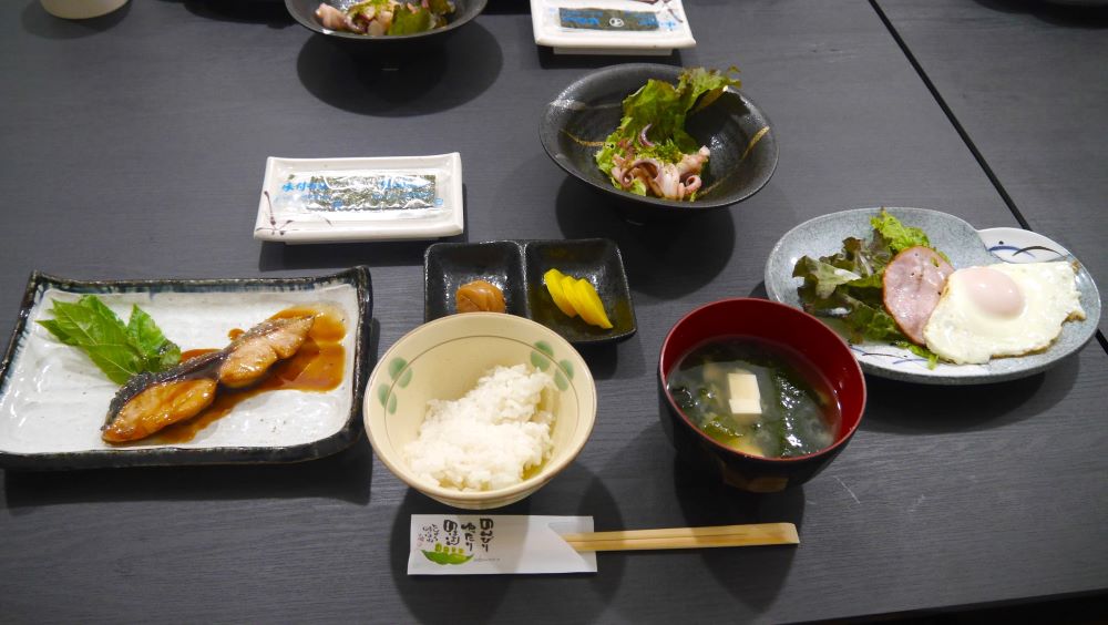2日目の朝ご飯!煮魚が美味しかったです!普段朝食はあまり食べないって人も、なぜか旅だとモリモリ食べられるんですよね。みんなで朝から完食しました。