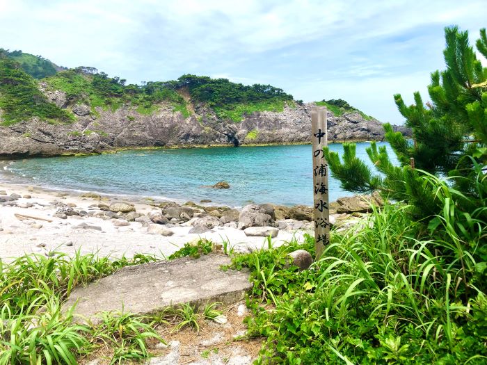 スノーケリング客に人気の中の浦海水浴場へ