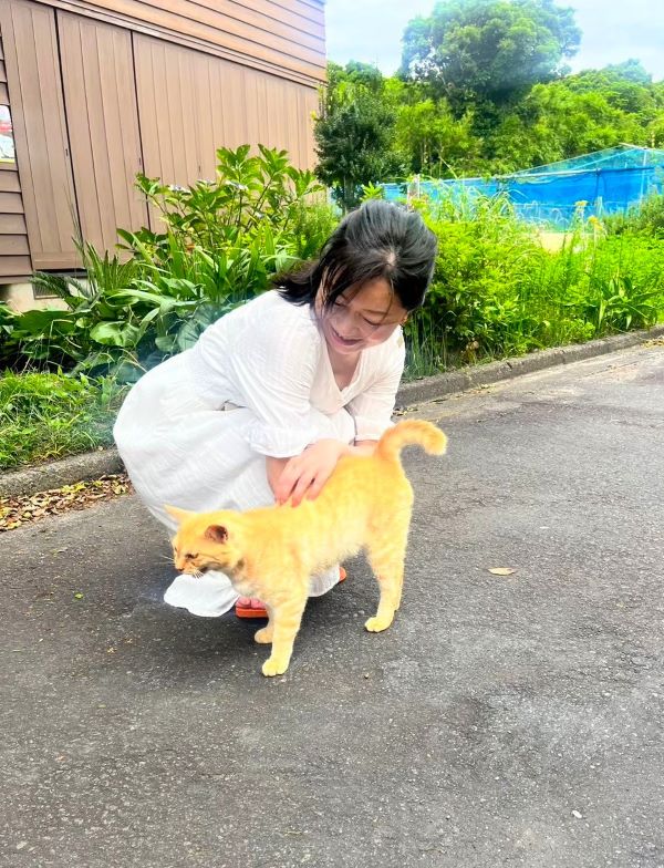 悦子さんは、大の猫好き。猫を見つけると、こんな風に、しばし戯れていました。