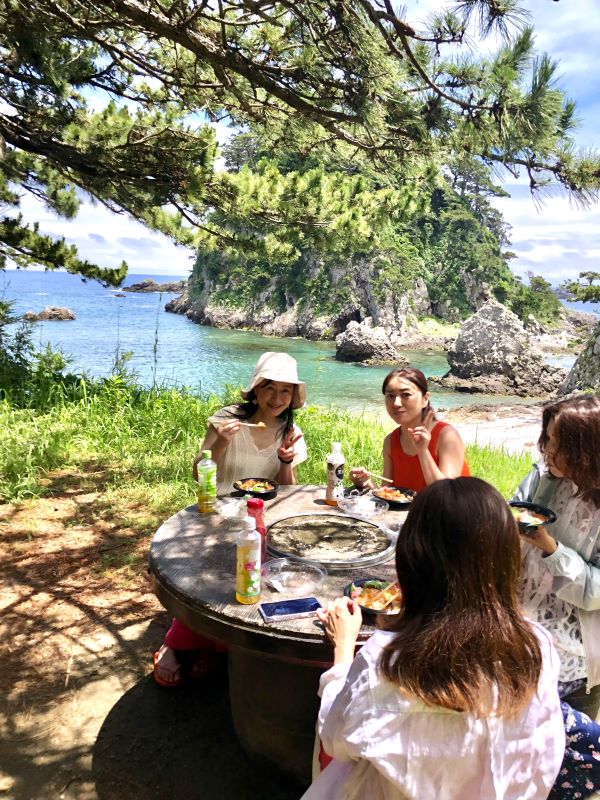 ランチはお店からも近い石白川海水浴場でしよう!