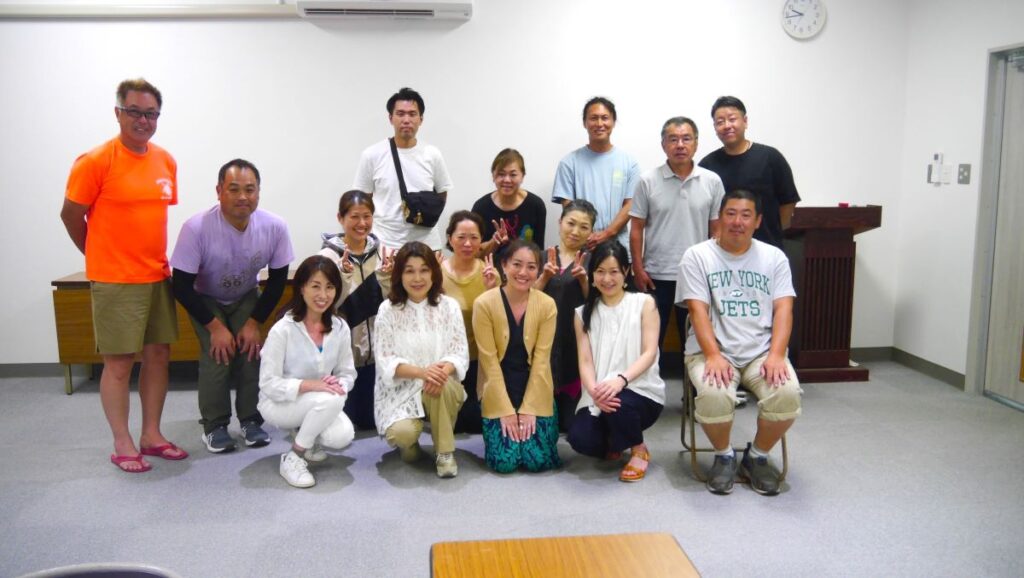 座談会を終えて、島の皆さんと記念撮影。最初はみんな緊張気味でしたが、途中から和気あいあい本音トークが展開されました。