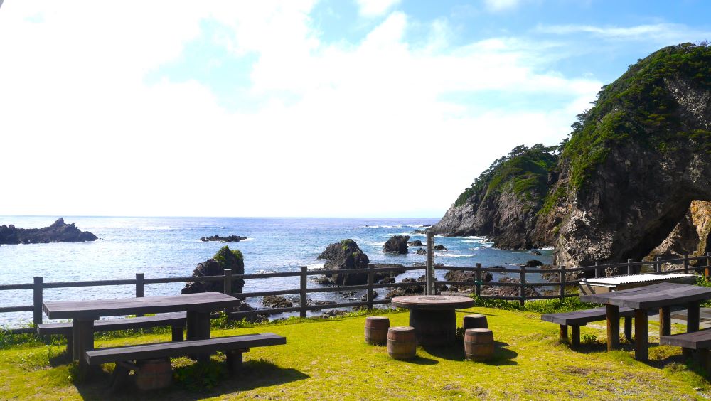 海を眺めながら、ここでお弁当もいいですよね。もちろん、キレイなトイレとフリーWi-Fiも完備です!