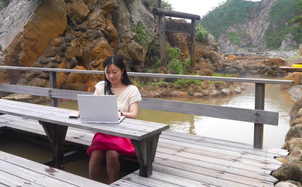 実は、ここフリーWi-Fi完備。なので、パソコン作業やメールチェックなど、ちょっとした仕事も足湯に浸かりながら可能です。