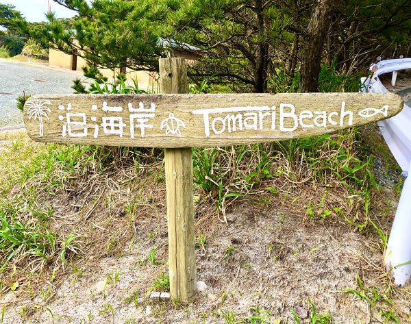 夕方に私たちは視察をすると約束していた場所がありました。それは、泊海水浴場のすぐ近くにオープンしたばかりの宿TOMARI TOMAROです。ネーミングも覚えやすくて可愛いですよね。