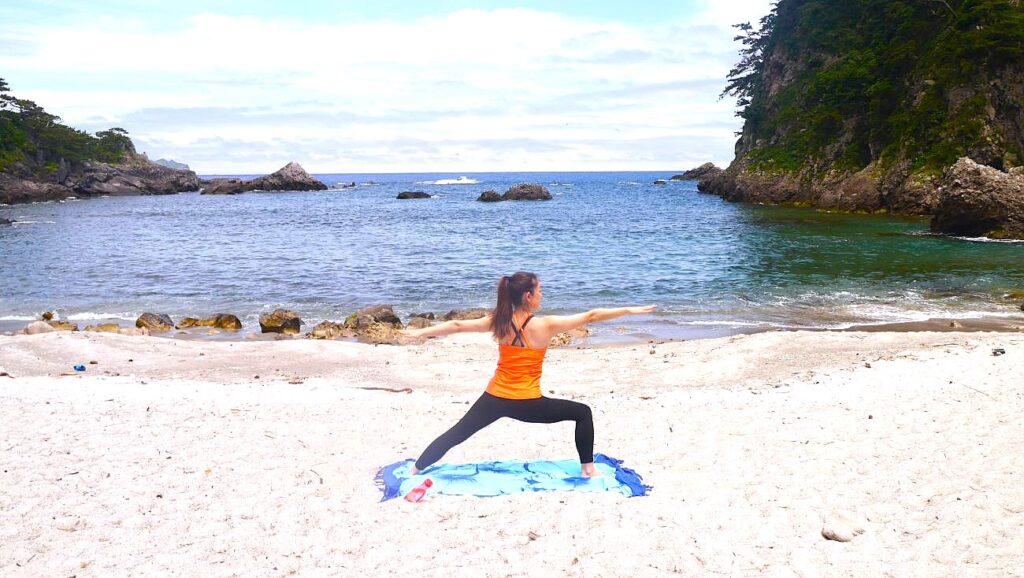 「こんな場所で一人旅で早朝ヨガとか最高だわ。しかもこの後、すぐ温泉入りにいくとか、一人でも楽しめそう」と、悦子さん。いつもはホットヨガスタジオでヨガをしているそう。やはり、海は気持ちいいですよね。