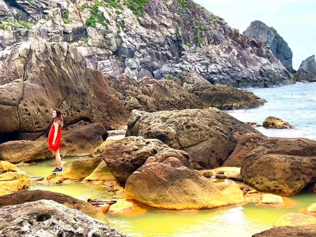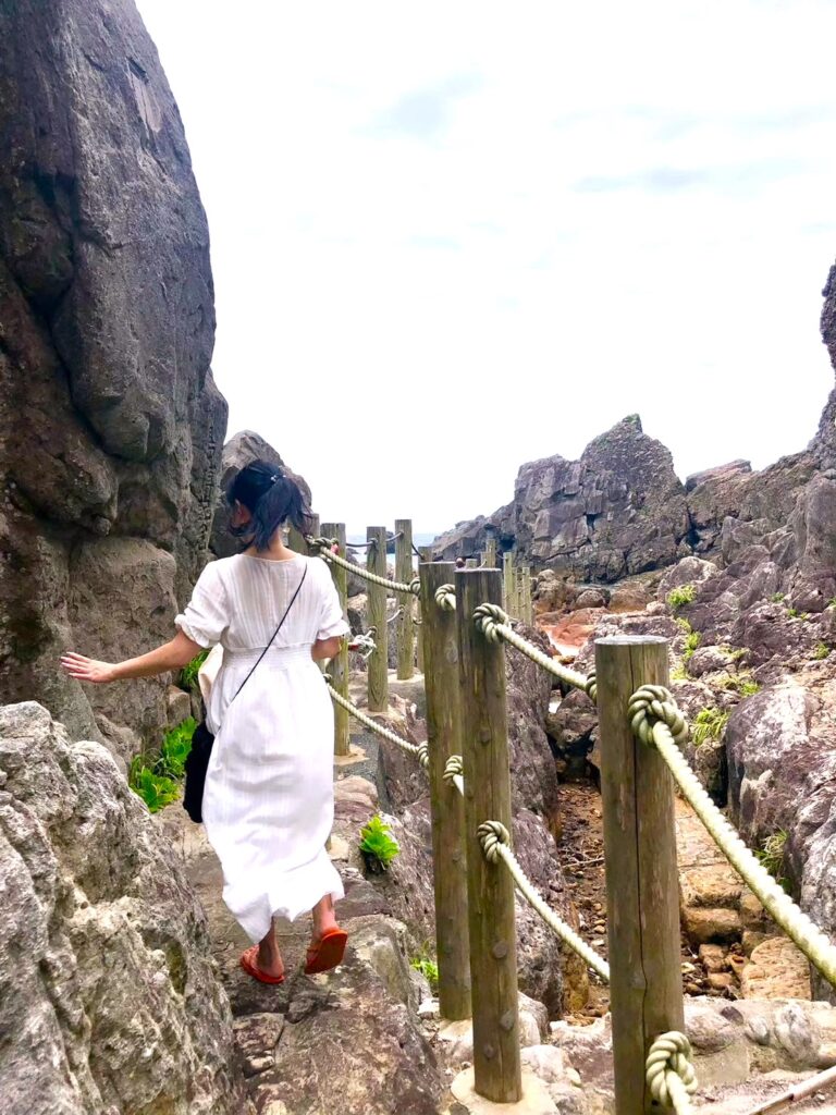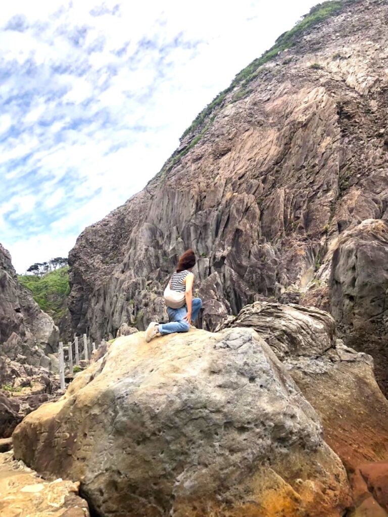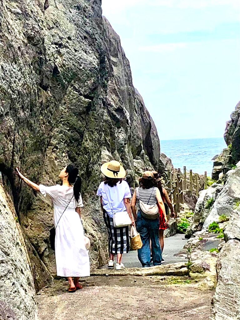 「すごーい、なんか今まで見たことのないような景色!」岩をひょいひょいと渡っていった悦子さん。