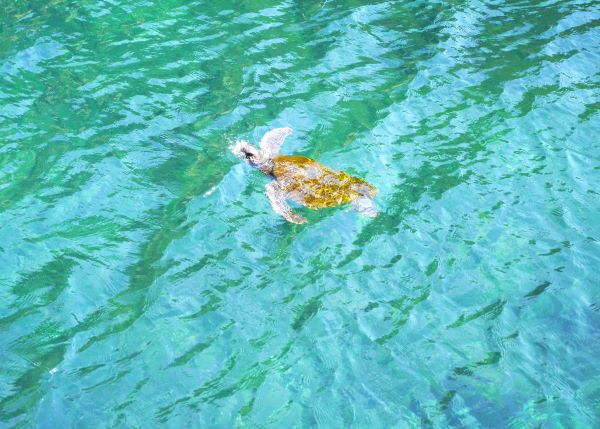 運よく岸辺まで泳いでくるタイミングがあると、こんな風に間近にウミガメが見れますよ。