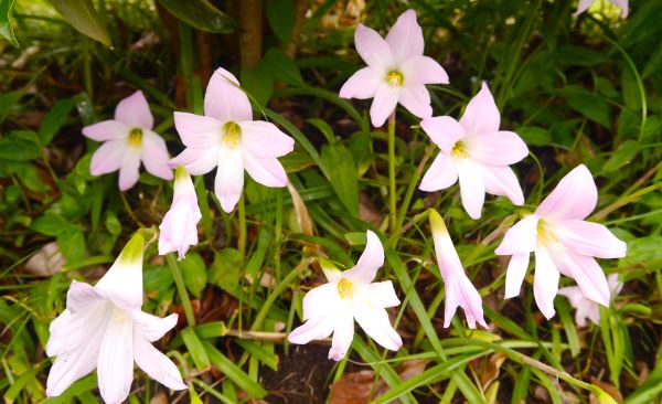 こちらの小さめの淡いピンクの百合は、ハブランサスで、別名レインリリー。