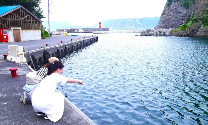 名残惜しそうに、泊海水浴場を見つめていた4人でした。