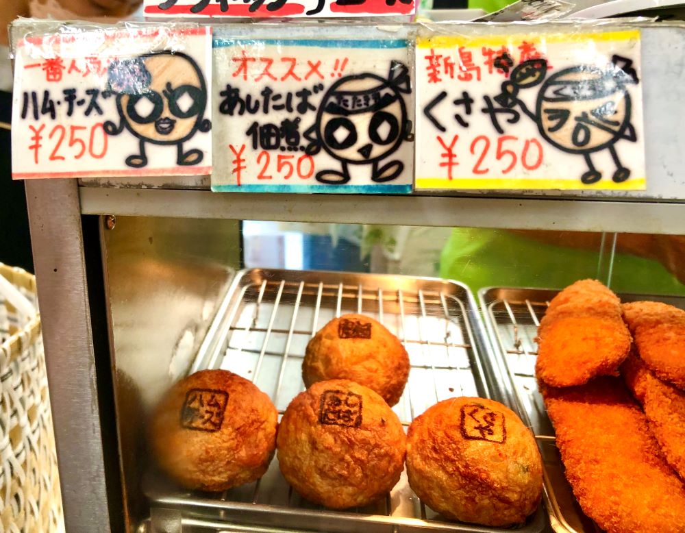 味は3種類、ハムチーズ、あしたば佃煮、くさやです。