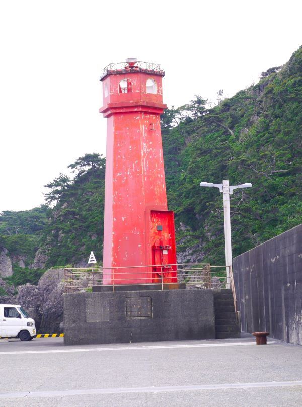 これは、式根島史跡の旧高森灯台をイメージしてつくられたもの。全国には、観光資源や特産品などをモチーフにしたデザイン灯台があるそう。式根島にもあるんですよ。赤い灯台って珍しいよね?近くで見ると、上の部分がお魚モチーフになっていましたよ。