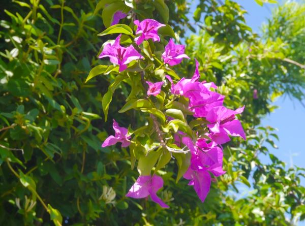 ブーゲンビリアは、石白川海水浴場に行く途中の道に咲いていました。